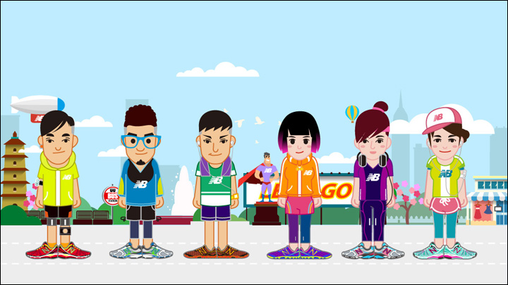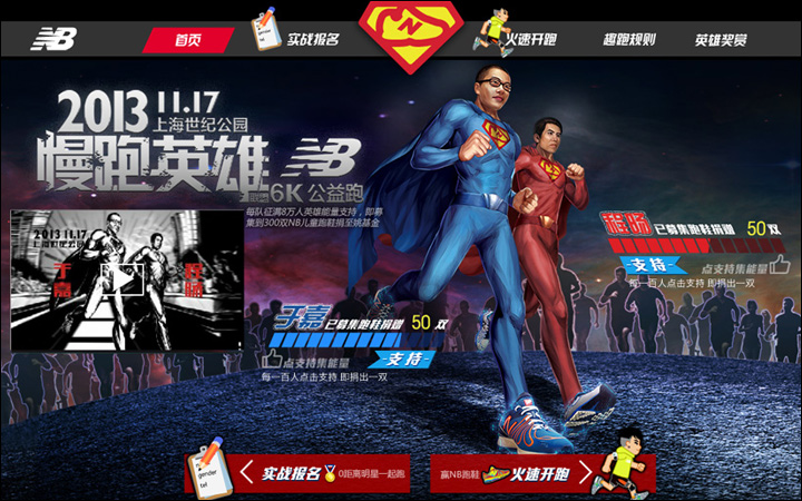 作為其互動(dòng)營(yíng)銷(xiāo)代理商的Leadinfo(立特整合營(yíng)銷(xiāo)傳播機(jī)構(gòu))便以英雄扮演的趣味方式為New Balance創(chuàng)意了一款在線趣跑游戲http://newbalance.renren.com,用戶(hù)只需用人人網(wǎng)賬號(hào)登錄,即可選擇卡通角色邊跑邊體驗(yàn)身為英雄的快感。