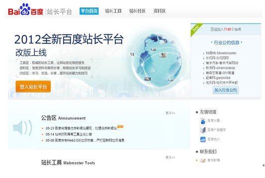 在剛剛結(jié)束的2012百度聯(lián)盟峰會上,百度正式宣布百度站長平臺(http://zhanzhang.baidu.com/)改版上線。同時,以規(guī)范網(wǎng)站運(yùn)營、建立綠色健康的互聯(lián)網(wǎng)生態(tài)環(huán)境為目標(biāo),百度聯(lián)盟和聯(lián)合行業(yè)代表共同發(fā)布了《互聯(lián)網(wǎng)行業(yè)網(wǎng)站運(yùn)營公約》。