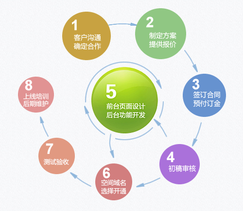 網(wǎng)站建設(shè)流程概述:客戶溝通,確定合作意向→制定建設(shè)方案,提供報(bào)價(jià)→簽訂合同,預(yù)付定金→初稿審核→前臺(tái)頁面設(shè)計(jì),后臺(tái)程序開發(fā)→空間及域名選擇、開通→測試驗(yàn)收→上線培訓(xùn),后期維護(hù)